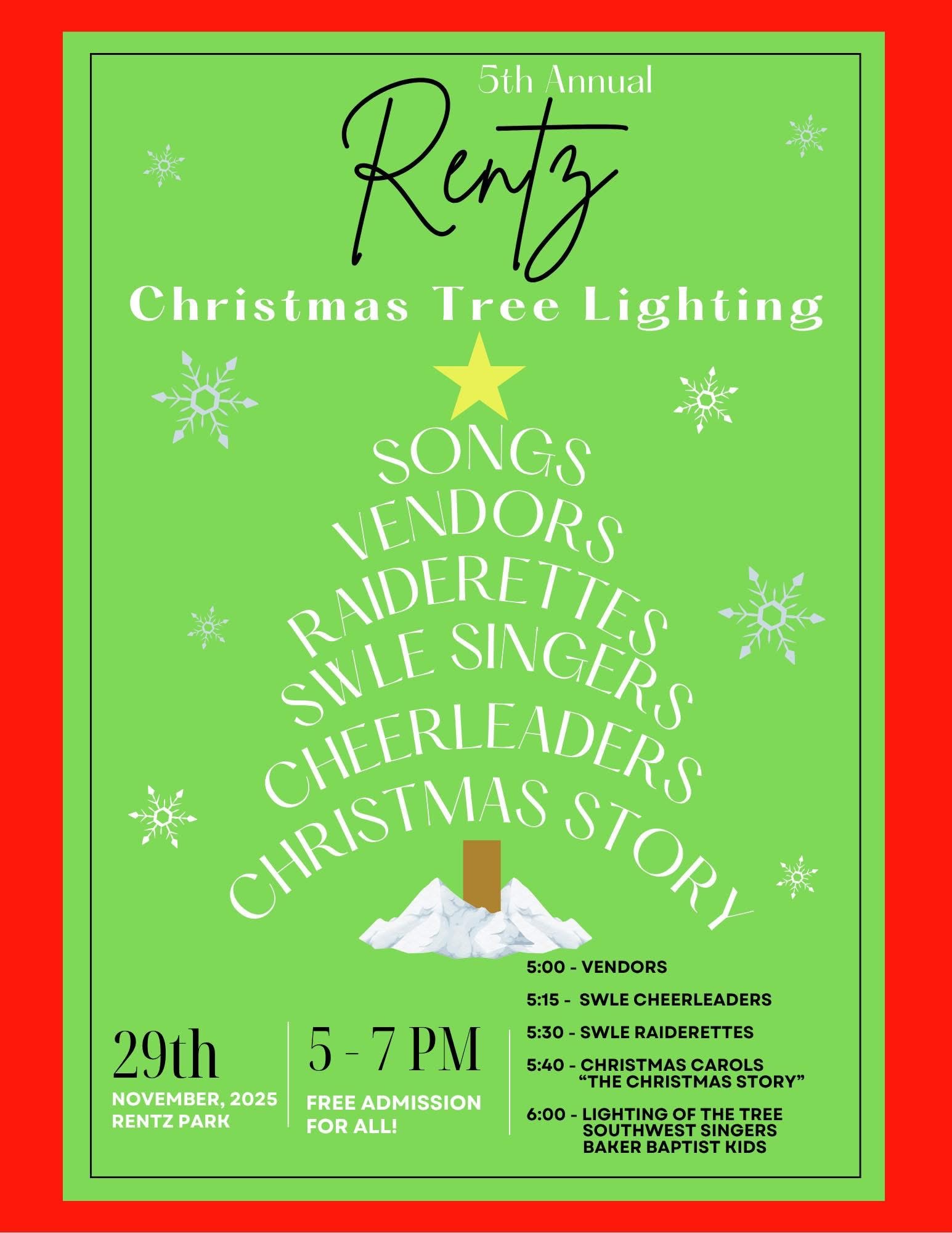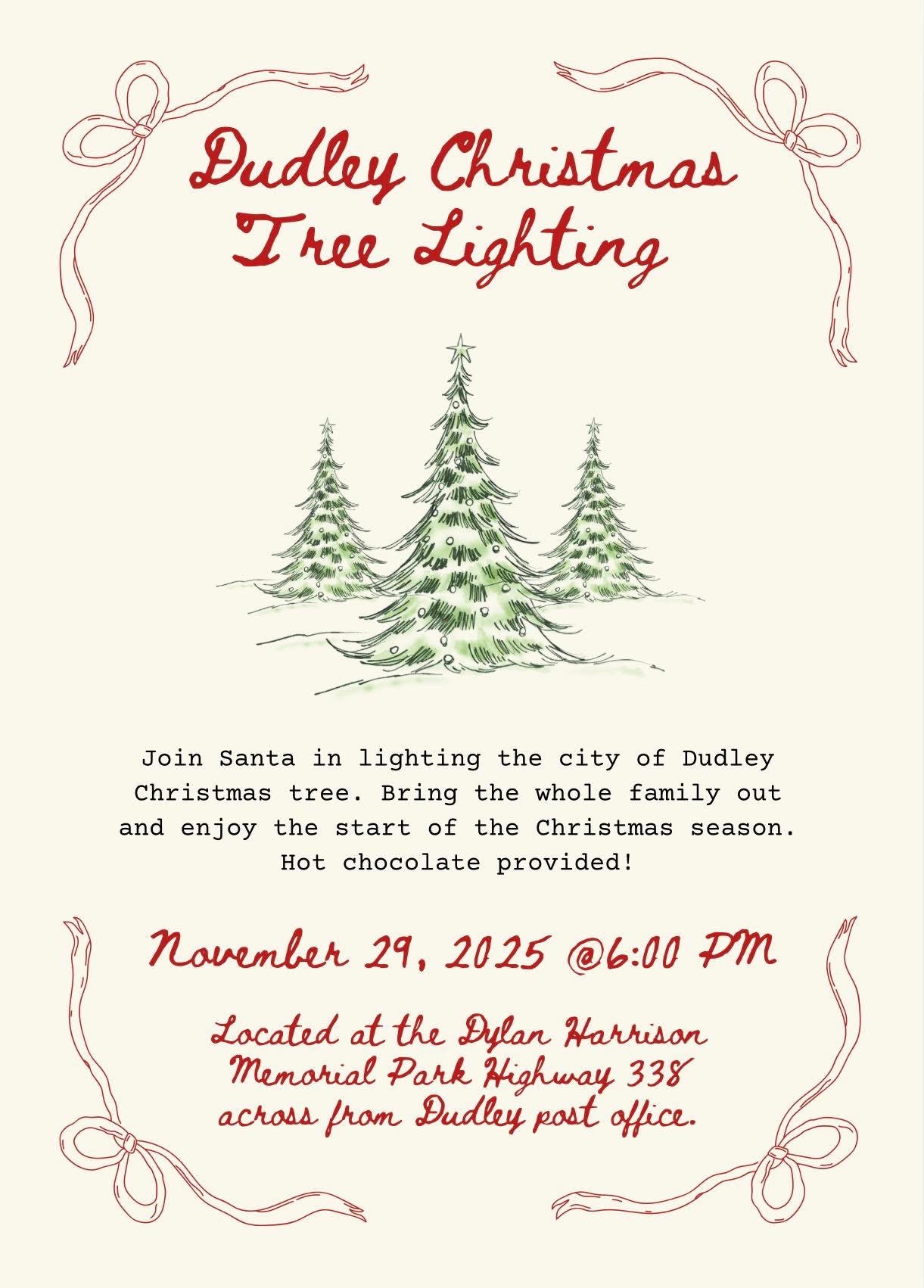 The magic of the season is coming alive at the Rentz Christmas Tree Lighting and Dudley Christmas Tree Lighting, where the whole community will gather to celebrate the most wonderful time of the year! Twinkling lights will dance in the night, warm cocoa will wrap hands in cozy comfort, cheerful music will fill the air, and joyful faces will glow with the holiday spirit.