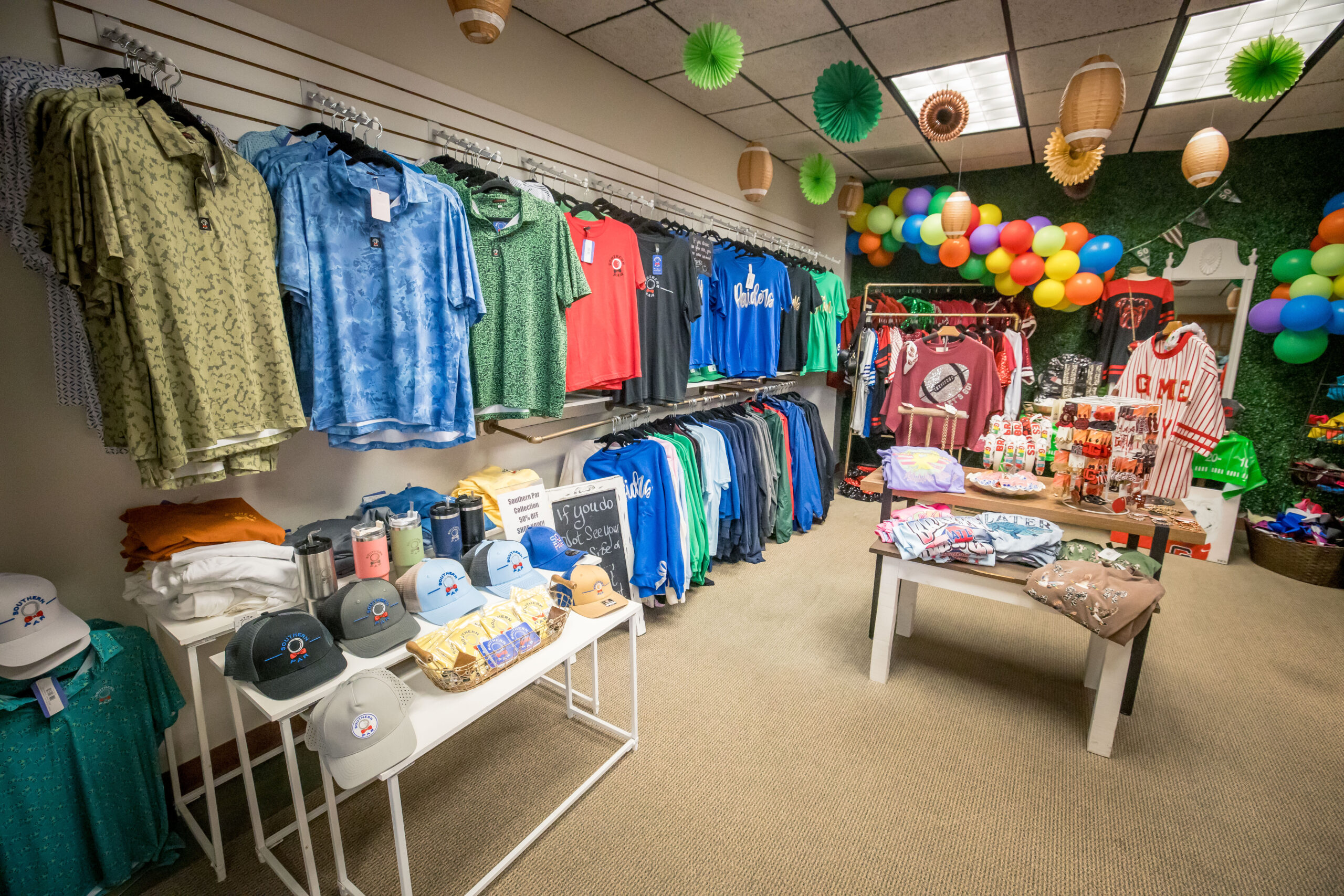 Even though the store is a women’s wonderland, Gee Gee’s still takes care of the guys. T-shirts, golf polos, caps, and more keep the lads looking stylish (and ready for a few holes at Riverview Golf Course).